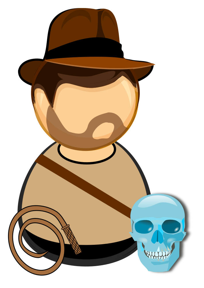 Adventurer in a hat, with a whip and glass skull