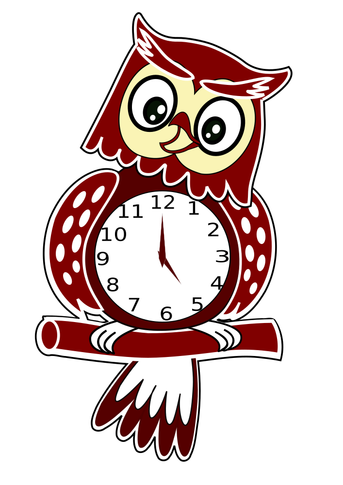 Animated Owl Clock - Whoo knows what time it is Remix of openclipart.org/detail/247141/owl-clock Added tick-tock motion to the owl's head Added clock hands and script to set the clock and keep time. An animated second hand is included, but the style is set to display:none - remove or set to display:initial to see the animated second hand
