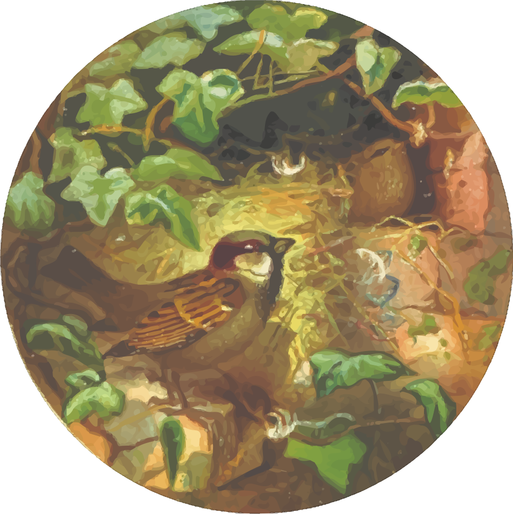 Circular house sparrow drawing
