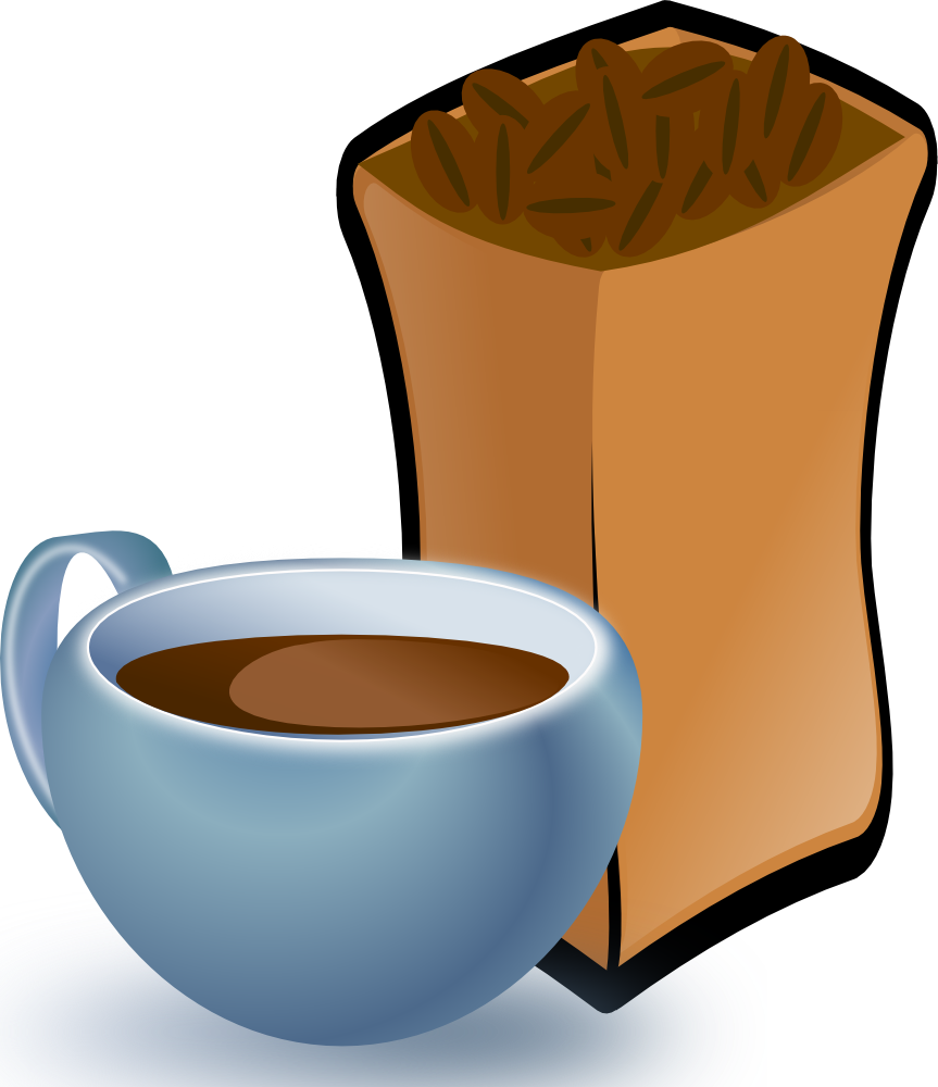 Cup of Coffee with Sack of Coffee Beans
