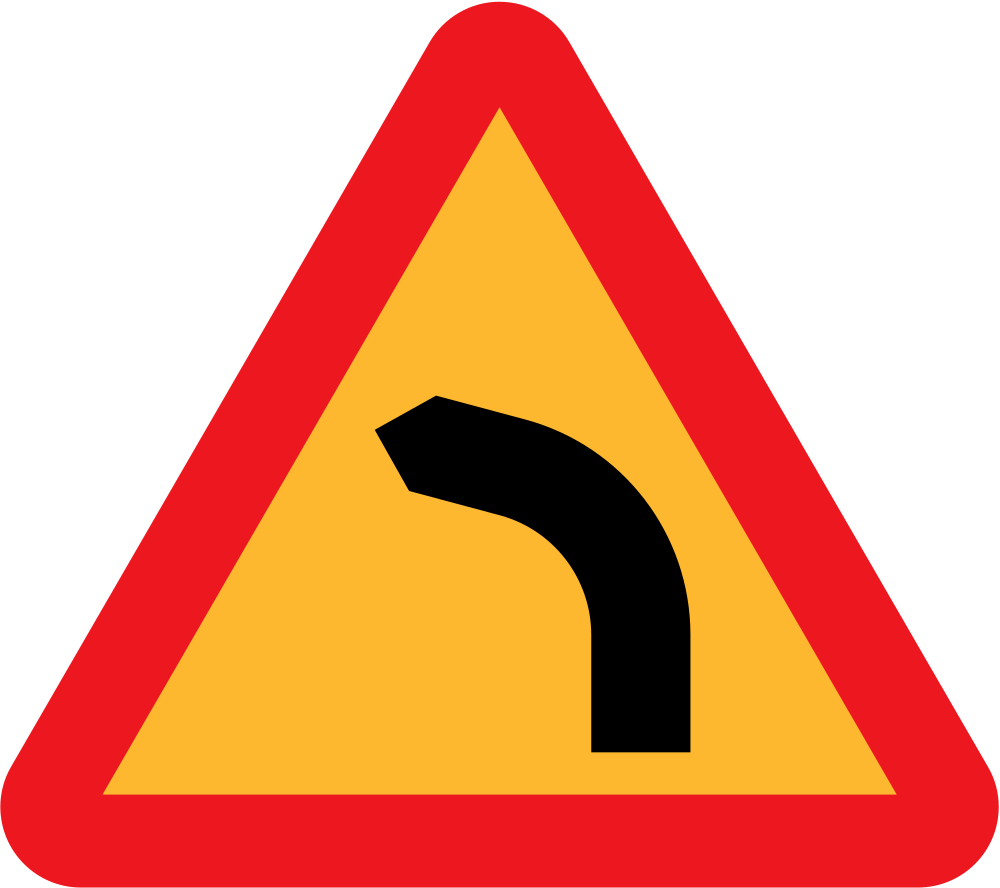 Dangerous bend, bend to left. Swedish Road Signs Collection on Wikicommons - URL http://commons.wikimedia.org/wiki/Category:Road_signs_of_Sweden information about why this image is in the public domain can be found there.