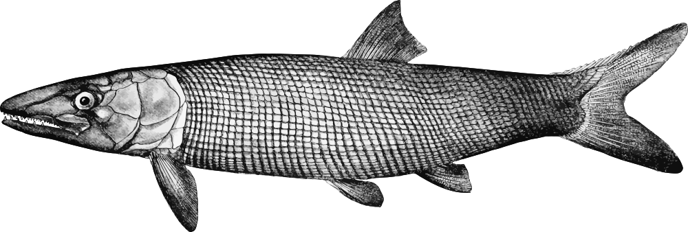 This is a drawing of specific extinct fish. But could really pass as a generic fish. From a drawing in 'A guide to the study of fishes', David Jordan, 1905.