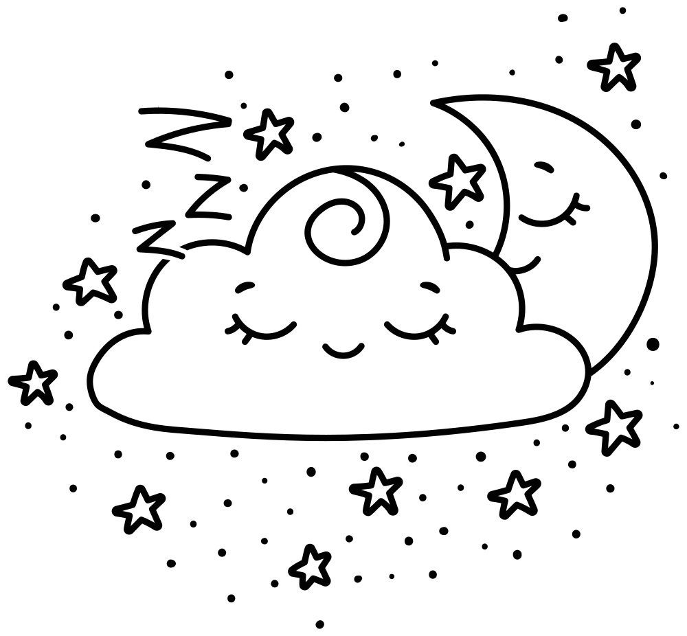 Kawaii Crescent Moon And Cloud Line Art