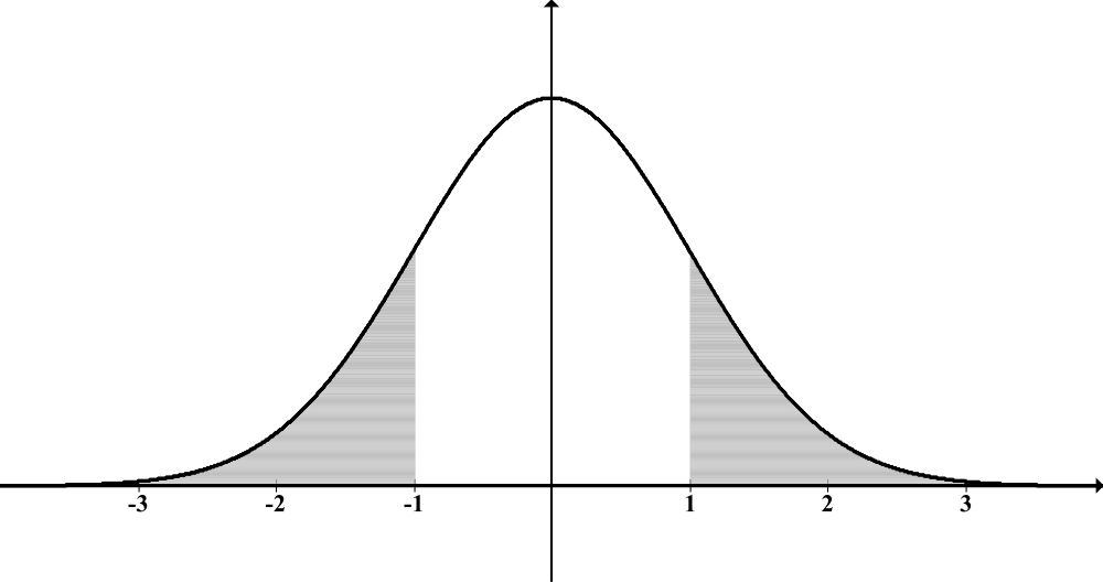Normal distn shaded outside 1s