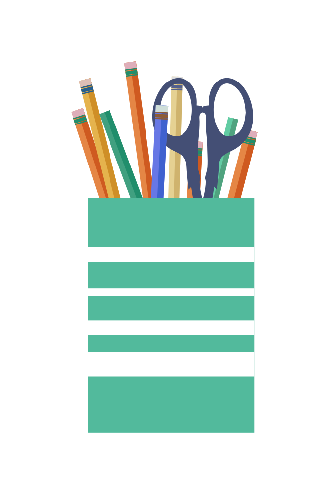 Office cup with scissors, pencils and pens
