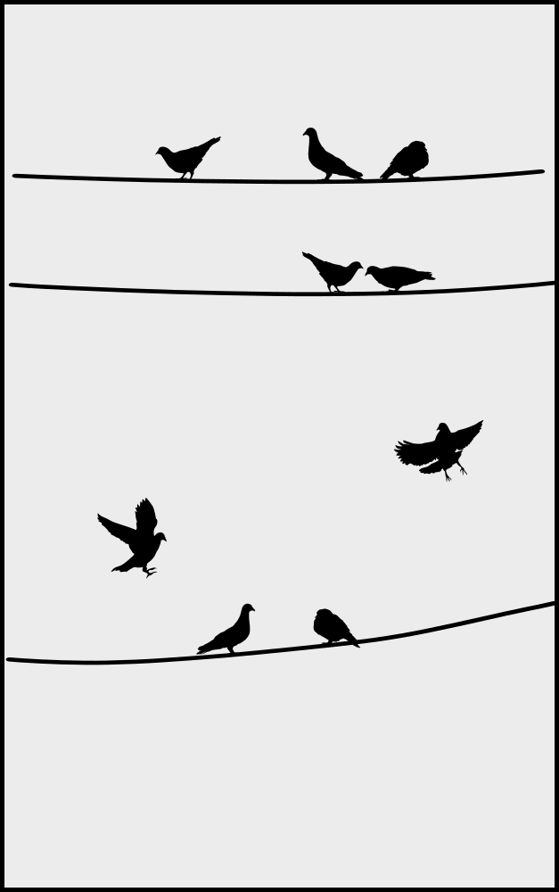 This was created as Vinyl wall graphics for my studio. There is a huge tree next to my studio that is home for these pigeons and they are all over my studio. I can't clean the crap everyday, so I figured I might as well put up vinyl pigeons so people can relate to all that poop. Drawn using inkscape by pencilsauce.com
