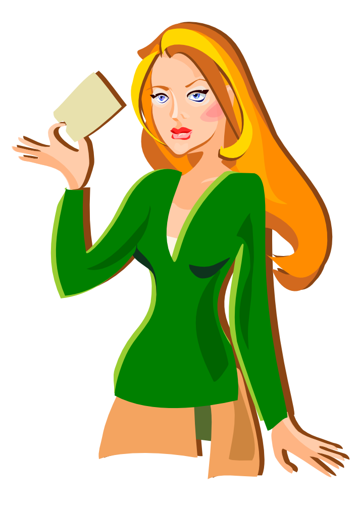 Redhead holding a card