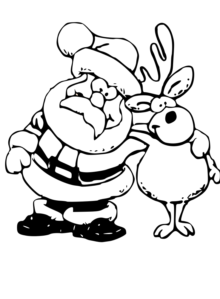 Santa and Reindeer Coloring Page