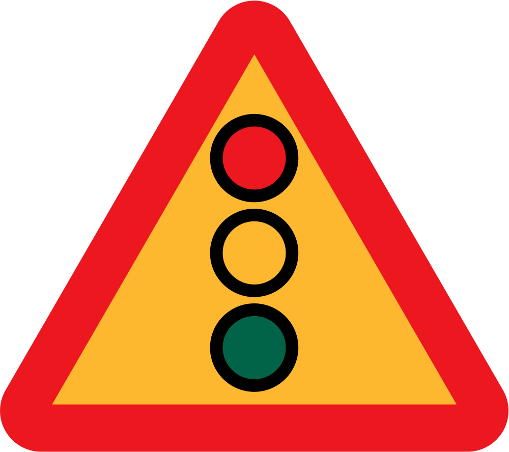 A sign depicting the fact that there is a set of traffic lights up ahead Swedish Road Signs Collection on Wikicommons - URL http://commons.wikimedia.org/wiki/Category:Road_signs_of_Sweden information about why this image is in the public domain can be found there.