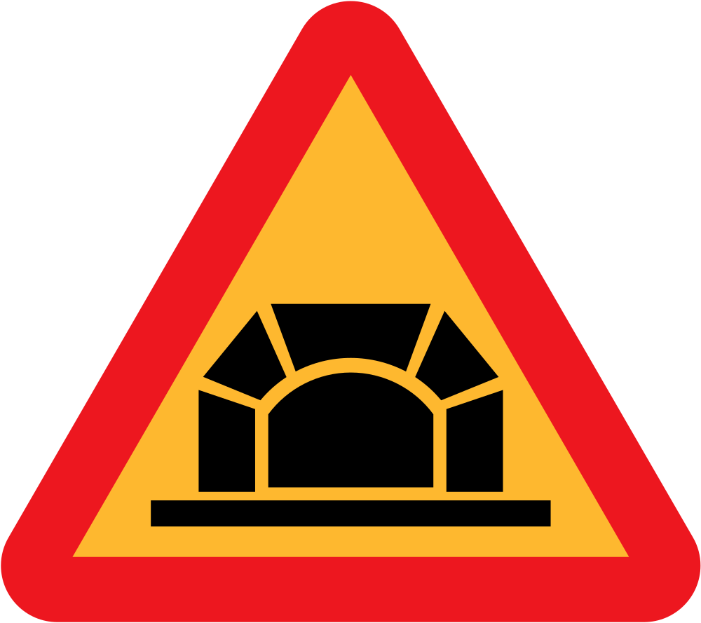 A sign depicting a road tunnel Swedish Road Signs Collection on Wikicommons - URL http://commons.wikimedia.org/wiki/Category:Road_signs_of_Sweden information about why this image is in the public domain can be found there.