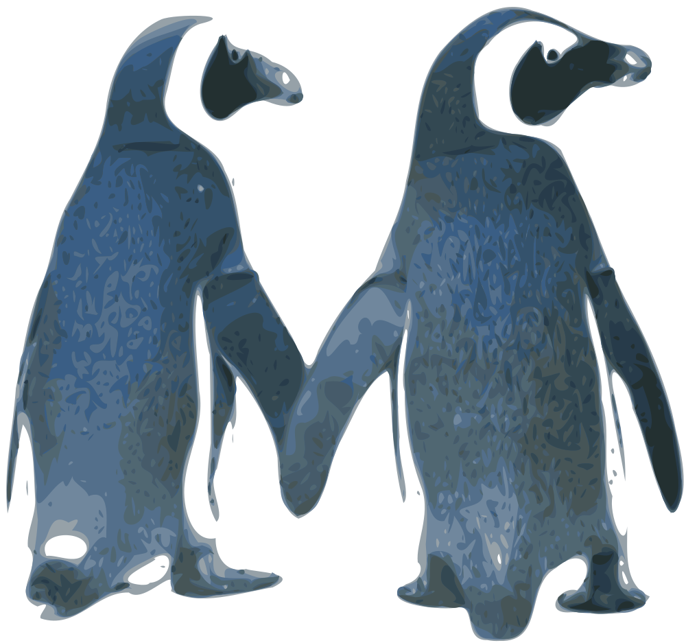 Two Penguins arranged to look like they are holding hands. Bitmap Trace of public domain image that can be found at http://www.public-domain-image.com/fauna-animals-public-domain-images-pictures/birds-public-domain-images-pictures/penguins-in-zoo.jpg.html