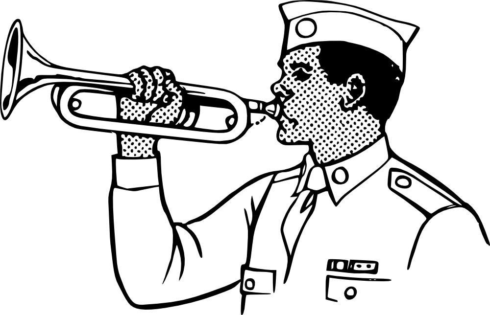 Young man playing on a bugle