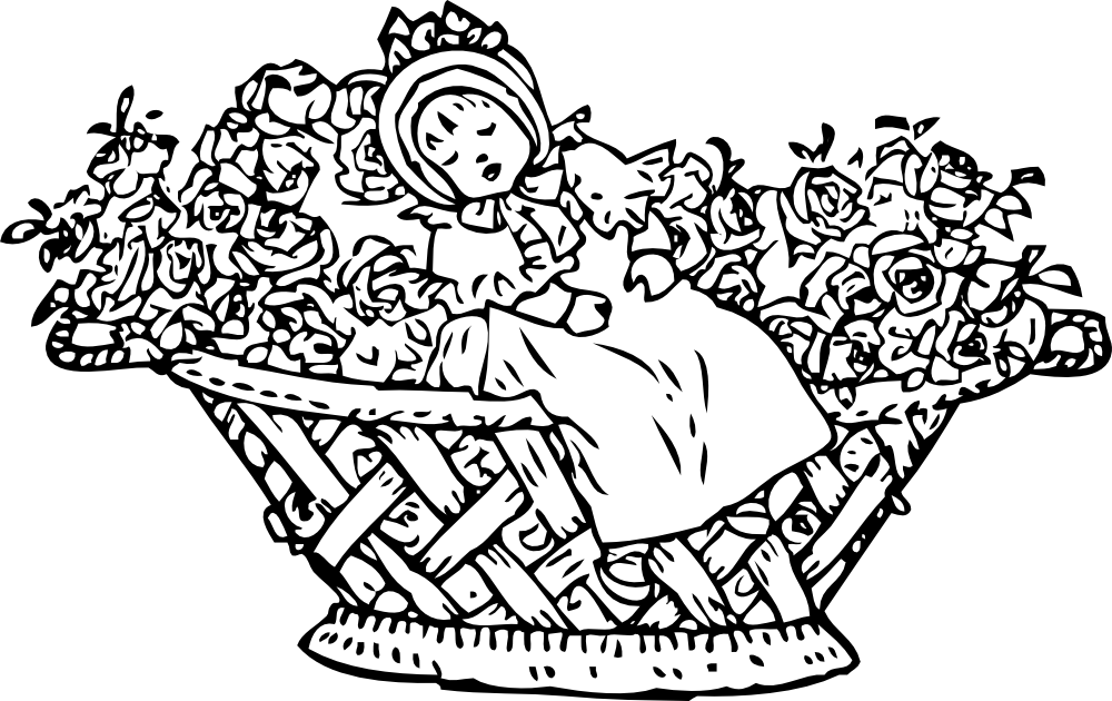 baby in rose basket