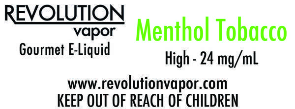 This is a label for e-cigarette refill liquid for Revolution Vapor - a premium supplier of e-cigarettes and gourmet e-liquid flavors made in the USA.
