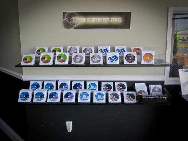 Our church likes to provide resources to our members and guests for free whenever we can, and one of the main areas we do that with is our weekend sermon CDs. At any time there's between 700-1200 CDs on the shelves that anybody can take if they missed a service or if they have a friend they would like to share that message with.